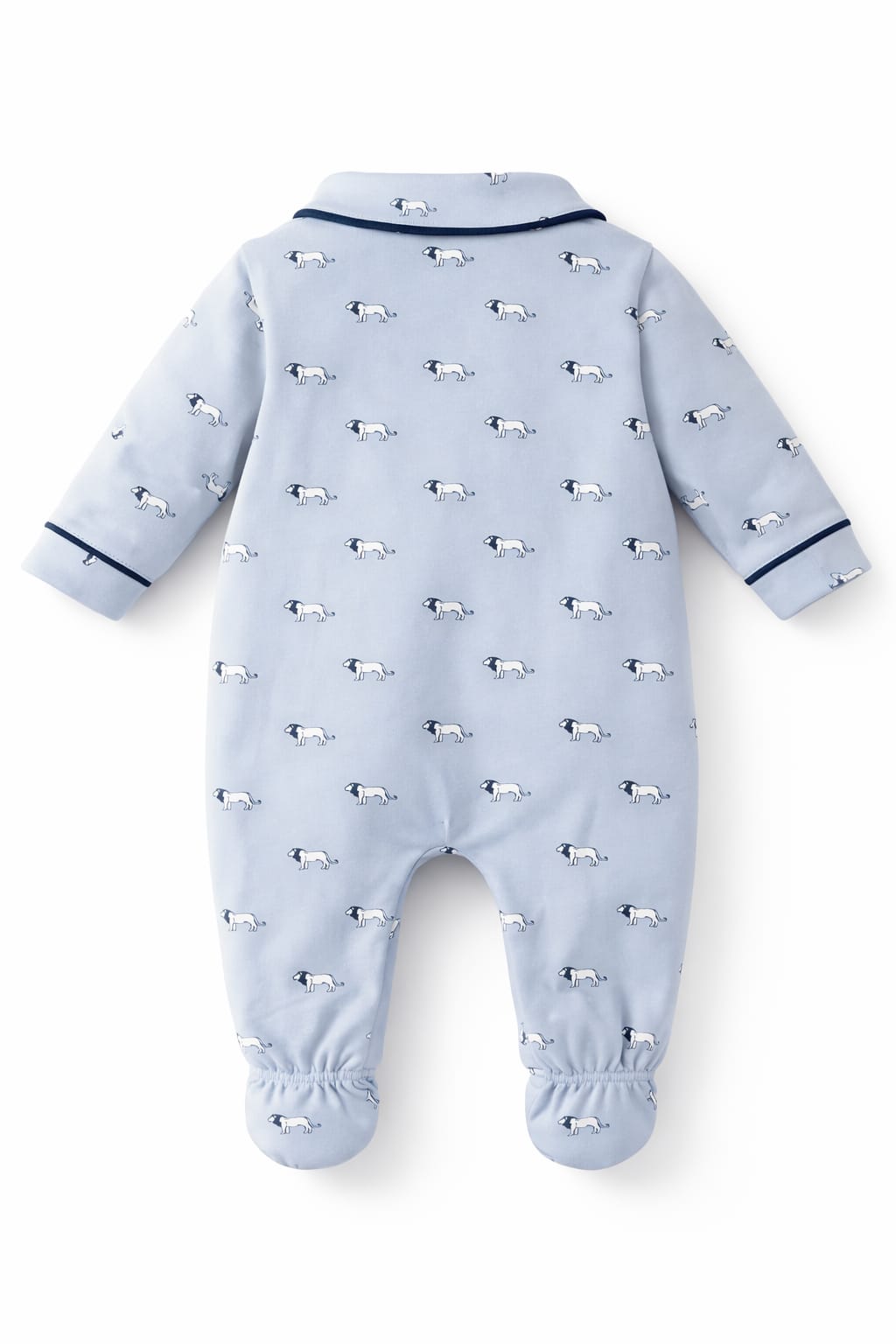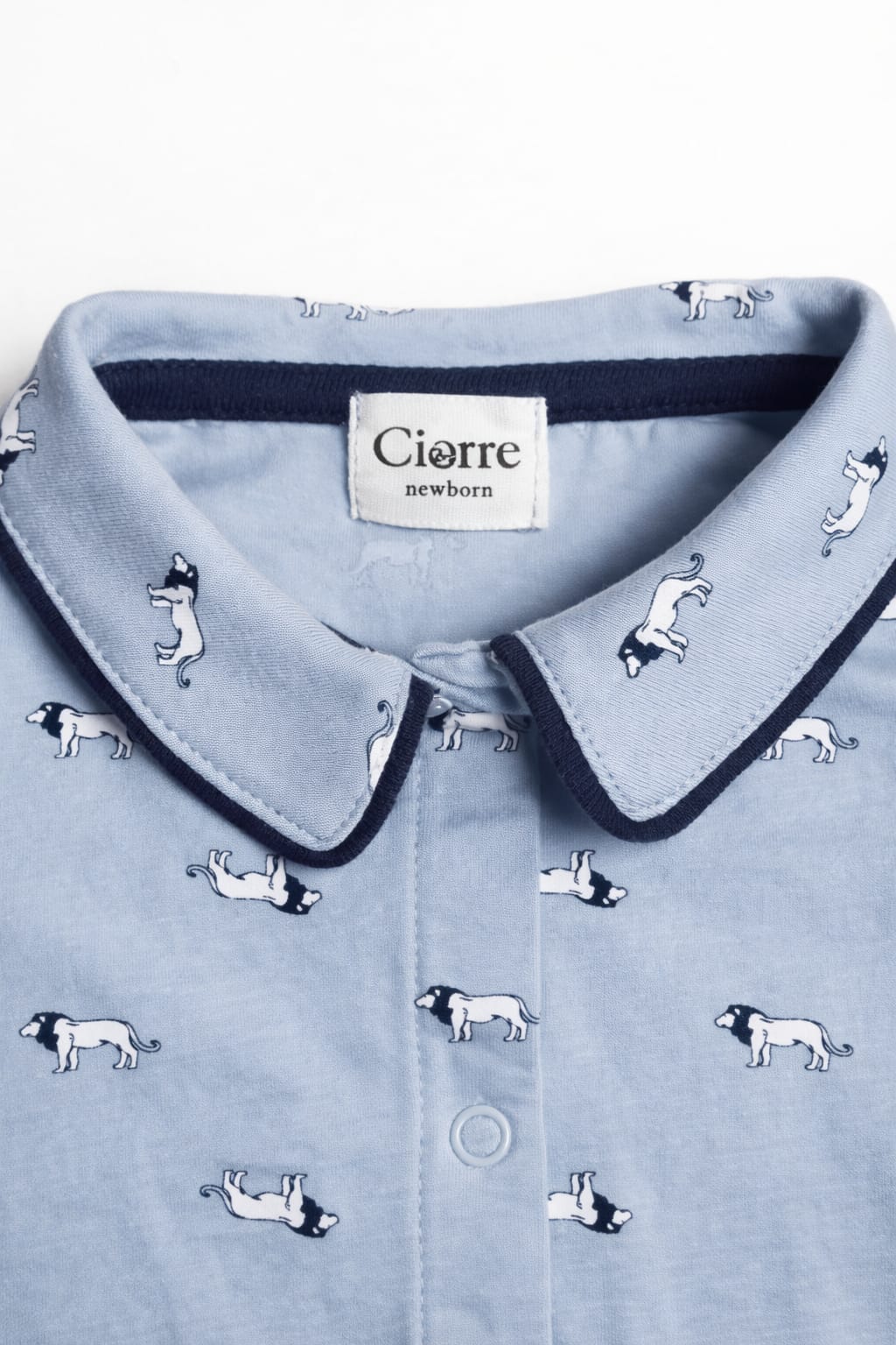 Ciorre Aslan desenli yakalı tulum seti; konfor, zarafet ve işlevselliği bir arada sunmak için tasarlanmıştır. Nefes alabilen pamuk interlock kumaşı sayesinde bebeğinizin hassas cildine uyum sağlar, gün boyu yumuşak temas sunar.
